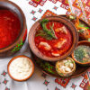 Ingredients:pork, beef, chicken, carrot, sorrel, potato, onion, paprika, garlic, greens, egg*, sour cream*, flour*